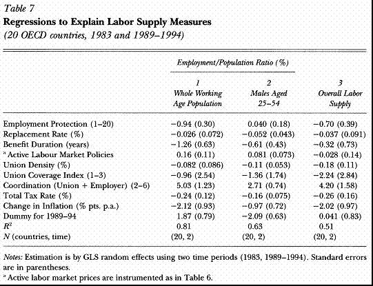 These results, which are more detailed in the article as well as including the data from all OECD countries, lead Nickell to conclude that there are four main causes of rigidity and unemployment: