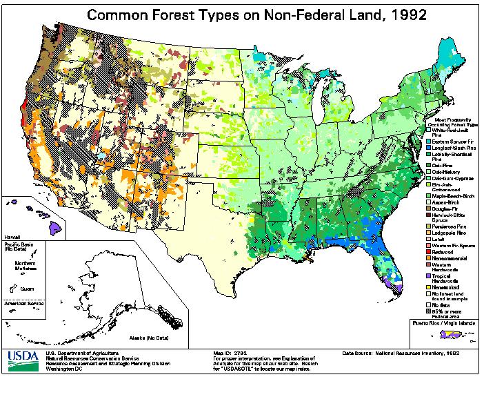 An expansion or contraction of thoughts on the previous post. There are many Forest Types (Industry Groups) in the World. These types are composed of groups or associations of Tree species (Companies) that Interact with one another (Competition or Coexistence, Success or Failure). Attached is a map of Common Non-Federal Forest (Cover) Types in the U.S., 1992.