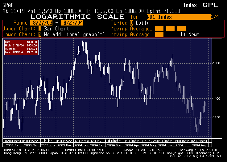 Consonance usually occurs, especially on the long side, and such consonance would be unachieved, making Rossini miserable in his grave until the Nasdaq is above 1400 (now 1380ish), and Euro worth less than 120.00 ( now 120.10). then it's a new symphony. -- Victor Niederhoffer