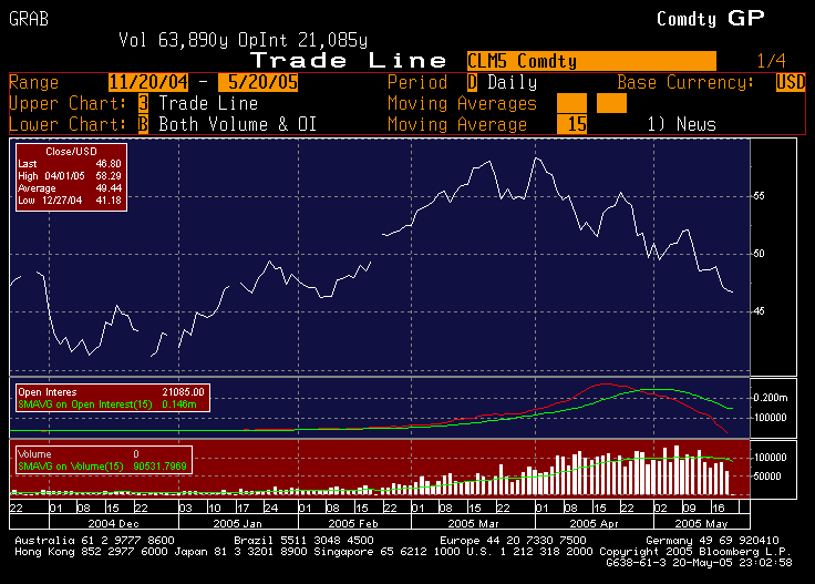 Also, while it is too early to declare victory, it is worthy of note that oil has now slipped below Goldman's target range of $50-$105 on a closing basis. The interesting thing about oil is that because the industry has so few moving parts, one can explicitly model the critical paths of the industry down to the individual refinery level. (The neat thing about a refinery is that it requires almost no labor to run -- some guy flips a switch and it just does its stuff -- until it explodes and even then only a few people are around to get killed.) As far as I can tell, Goldman works from a back-of-the-envelope modeling methodology rather than a detailed micromodeling approach in order to save money (and because they appear to lack the specialized expertise needed to do things right). Back in the 1980s, when I did a brief stint as a petroeconometrician, the group that I worked with was the only one that drilled down far enough and our competition (mainly DRI) were basically faking it by projecting down from a macromodel rather than up from a micromodel.
