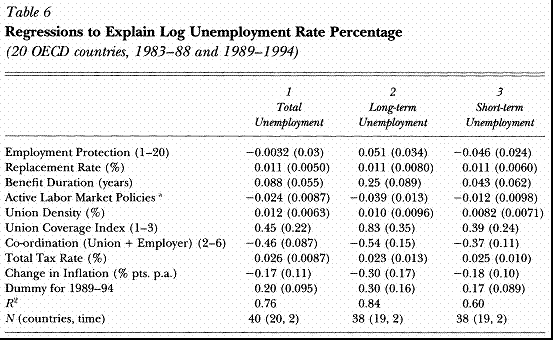These results, which are more detailed in the article as well as including the data from all OECD countries, lead Nickell to conclude that there are four main causes of rigidity and unemployment: