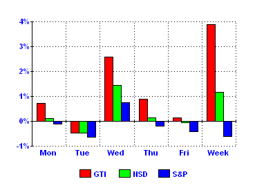The GTI beat the NASDAQ every day this week.
