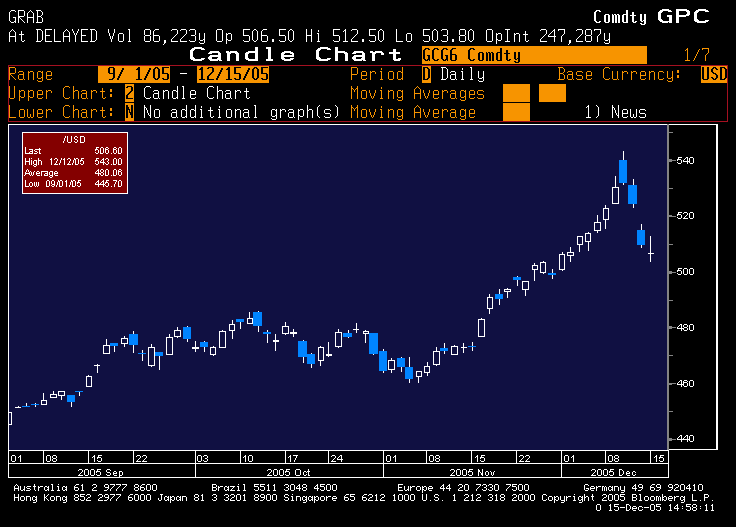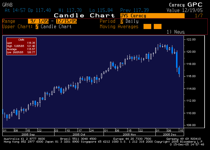 So, yesterday's Fed meeting was a hinge moment, with trendfollowers learning, to their dismay, that they'd been standing on a trap door. Yen and gold positions, both clearly the November saviors of certain trendfollowers, became vacuums. 2005s that once looked salvageable are now beyond redemption. I think the story is less pernicious, and less interesting, on the debt side. Folks were modestly short (all the chatter was bearish) going into the meeting, so this is just an unwind/rebalance in a thin December market.
