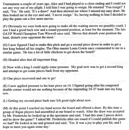 Writers who do not play (and perhaps never played) can start to forget about the realities of the game, yet they have to talk themselves up and sound impressive to sell their books. The stronger they were at their peak, the less likely this is to happen. But with the weaker non-playing authors almost nothing they say is really true. This leads to the interesting phenomena that you have a whole range of 'experts by book' and then those who think they are 'knowledgeable' through having read these books. But what they have in fact been learning are irrelevant and even damaging half-truths.
