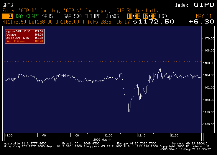 And the futures closed up 2.5 points on the day, showing the usual Fisher effect of the lagged response of the index to the news and thereby emphasizing once again the inexhaustible number of biases in "academic" studies of markets, the supreme efficiency of the market, and doubtless webs of deception on all sides.