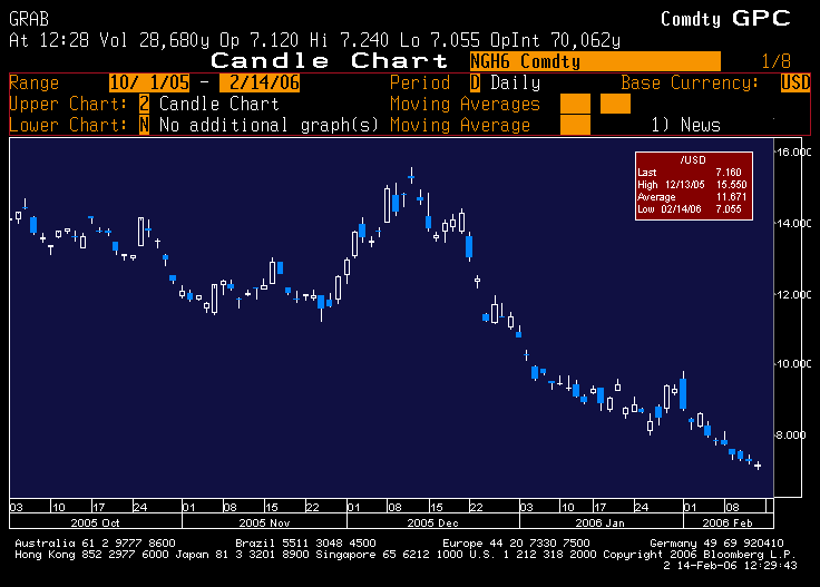 Of the top 10 physical commodities by open interest, 5 are up and 5 are down so far in 2006, with the average year-to-date change being -3.3%. The bull case for the biggest gainer is that it is an energy substitute.